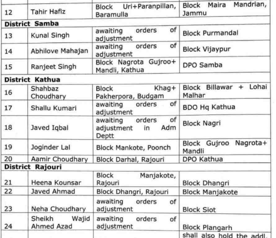 Subject:Transfers/Postings/Adjustment of Block Development Officers/ I/c Block Development Officer/ Look-after Block Development Officers.