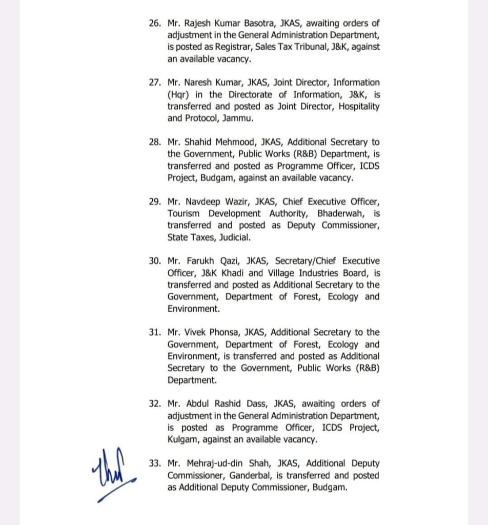 33 JKAS Officers Transfer And Posting in jk October 29, 2023 by Dar Zahoor33 JKAS Officers Transfer And Posting in jkWhatsApp Group Join Nowfull details below order list Leave a Comment Cancel replyCommentName Email Website Save my name, email, and website in this browser for the next time I comment.