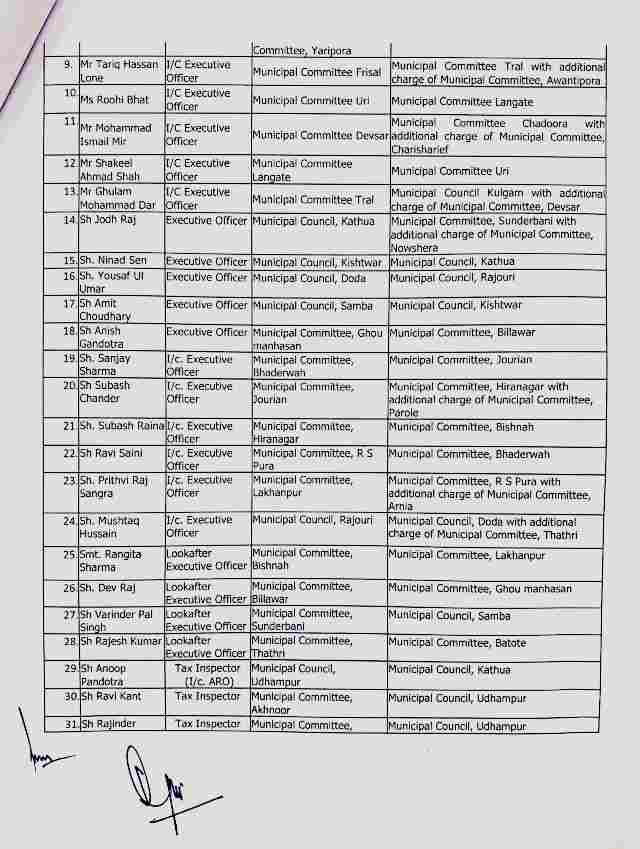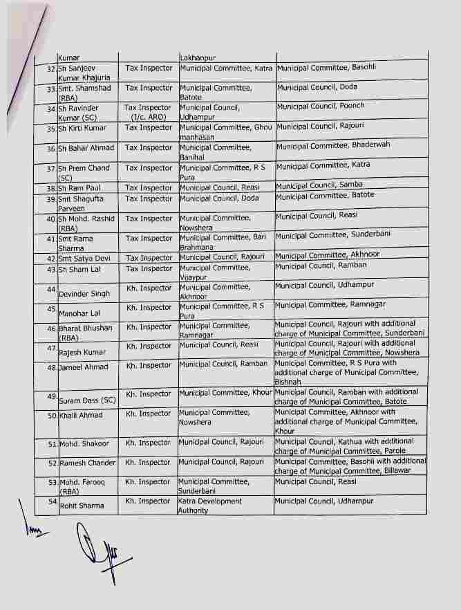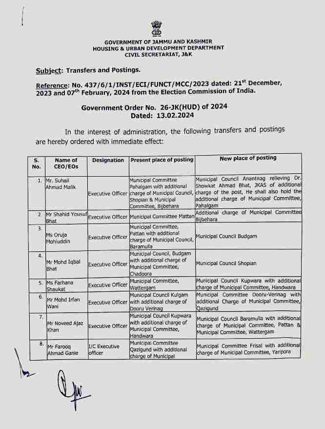 54 Officers Transfers and Postings in Jammu and Kashmir-Reference: No. 437/6/1/INST/ECI/FUNCT/MCC/2023 dated: 21st December, 2023 and 07th February, 2024 from the Election Commission of India.