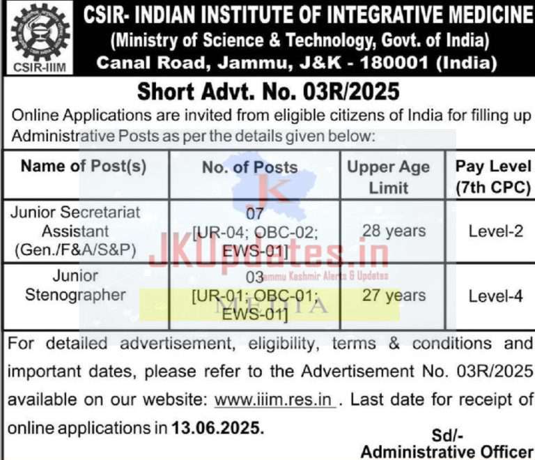 For detailed advertisement, eligibility, terms & conditions and important dates, please refer to the Advertisement No. 03R/2025 available on our website : www.iiim.res.in