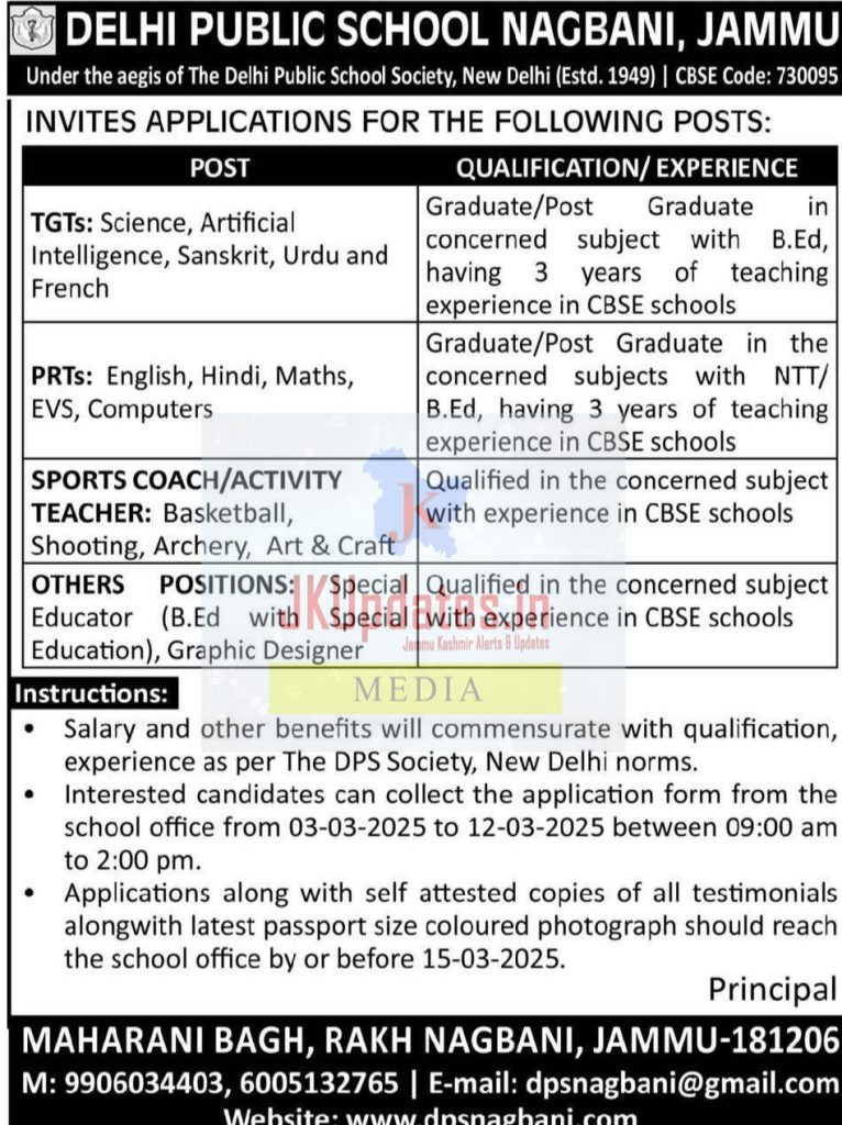 Salary and other benefits will commensurate with qualification, experience as per The DPS Society, New Delhi norms.
