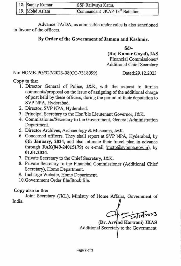 Sanction is hereby accorded to the deputation of following IPS officers to undergo 45th IPS Induction Training Course, scheduled to be held from 08.01.2024 to 16.02.2024, at Sardar Vallabhbhai Patel National Police Academy (SVP NPA), Hyderabad:
