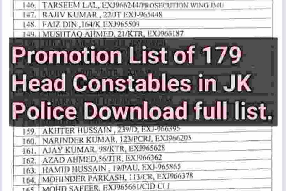 The following Head-Constables were brought on promotion list “D” vide ZPHQ Jammu order No.950 of 2023 dated 15-05-2023 and their promotion order was made subject to successful completion of the requisite Pre-Promotion Course i.e Intermediate Class Course;