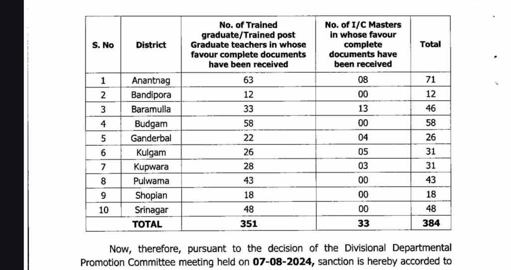 The Divisional Departmental Promotion Committee (DDPC), in its meeting on 07-08-2024, approved promotions of eligible trained graduate and trained post-graduate teachers to fill 890 general category posts.
