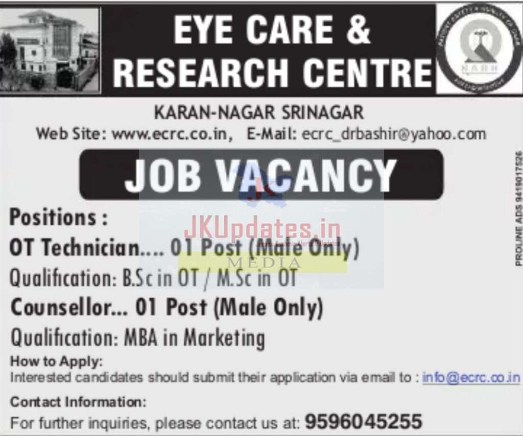 Eye Care & Research Centre job Vacancies