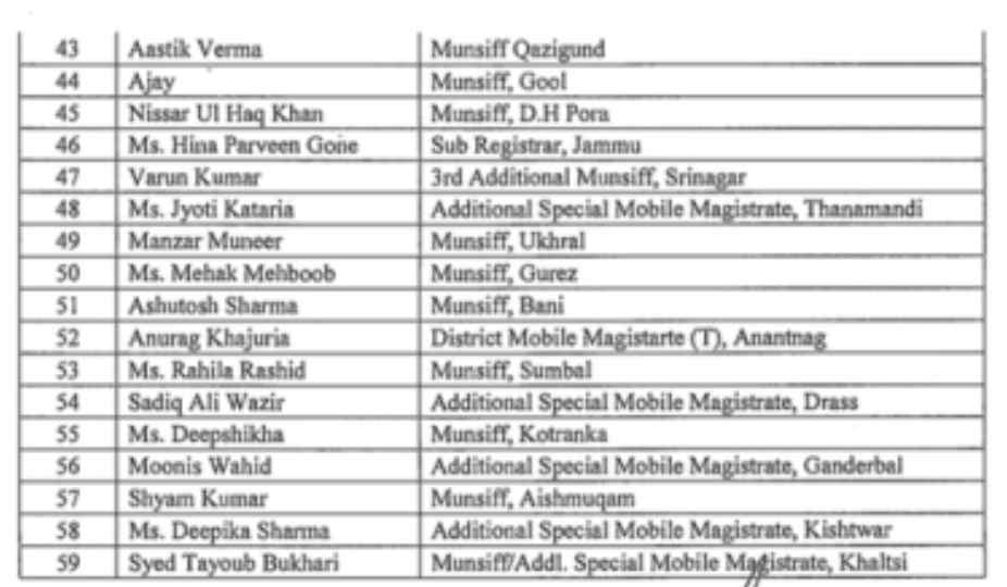 High Court conferred powers of Judicial Magistrates Ist Class to 59 Civil Judges(Junior Division) in Jammu and Kashmir.