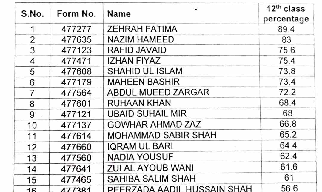 2024 and extension notification No. ICS/4778-85/D-18 dated:16-12-2024, the list of