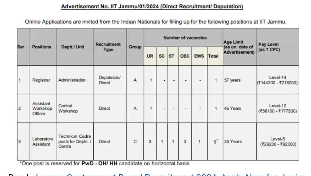 IIT Jammu Non-Teaching Staff Recruitment 2024: Apply Now for Various Vacancies