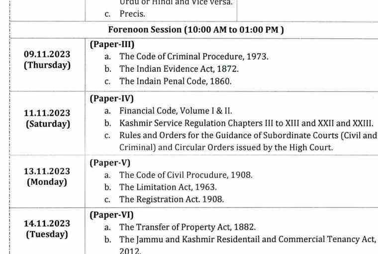 Jammu and Kashmir Civil Services (Judicial) Main Exam 2023 Schedule Released