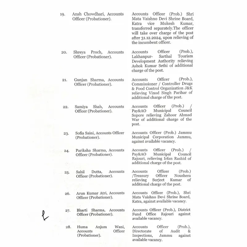 Jammu & Kashmir Government Assigns 48 Accounts Officers for On-Job Training