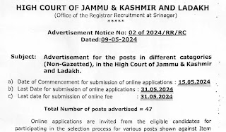 online mode on recruitment portal of the High Court of Jammu and