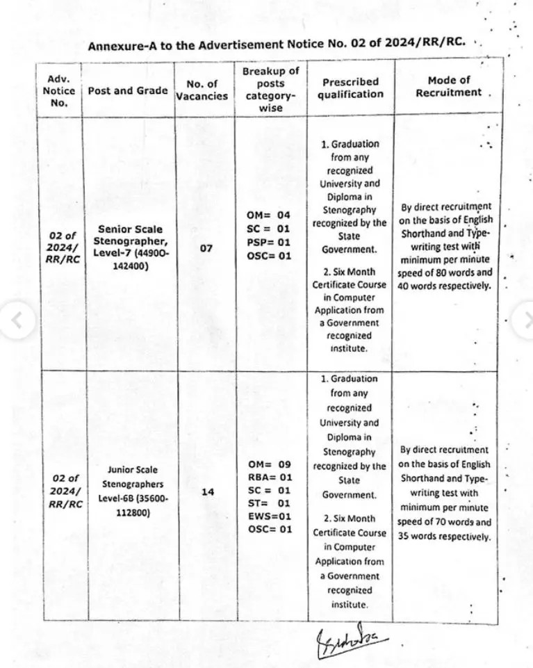 - Junior Scale Stenographer