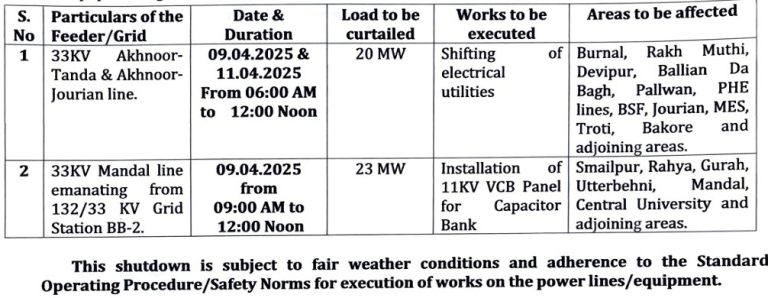 JK Power Supply Maintenance Schedule April 9, 2025 by Dar ZahoorJK Power Supply Maintenance ScheduleWhatsApp Group Join NowFree bus service for women sees over 3.5 lakh passengers in a week. Leave a Comment Cancel replyCommentName Email Website Save my name, email, and website in this browser for the next time I comment.