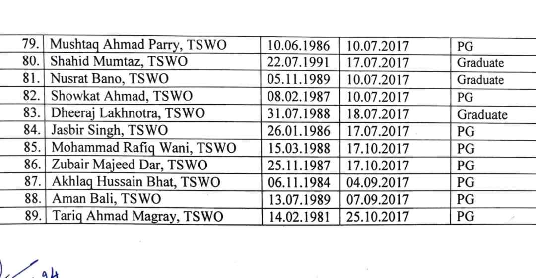 J&K Tentative Seniority List of ACDPOs/TSWOs Of Social Welfare Department