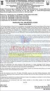 If any candidate has an objection regarding their result, they must submit a written representation along with a fee of ₹1000 (payable via POS Machine at BOPEE offices, Jammu/Srinagar) within three days after the result notification is uploaded.