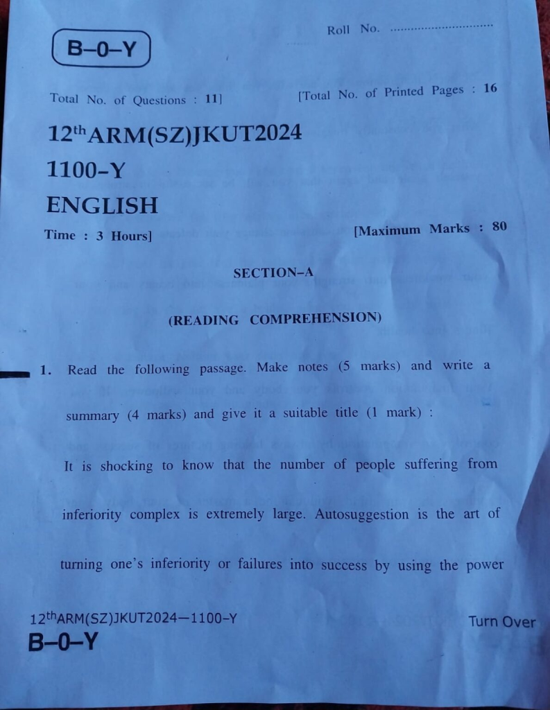 JKBOSE Class 12th English Question Paper Of Today Annual Regular 2024 – Download Here