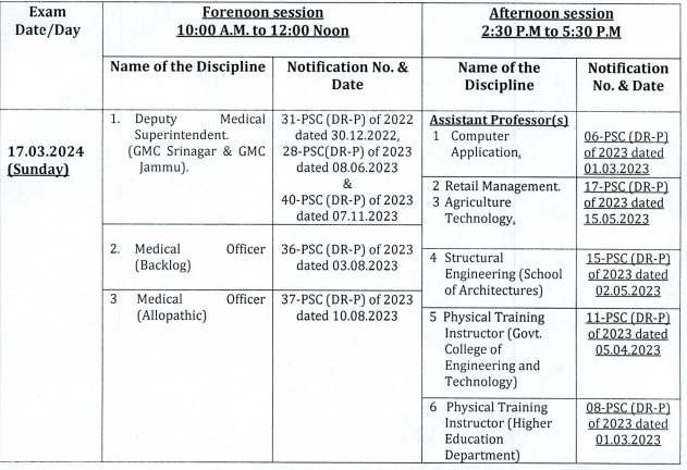 The Admit cards will be uploaded on the website of the Commission w.e.f. 13.03.2024. However, those candidates who are unable to download their Admit Cards may approach the Commission office by or before 15.03.2024 at Jammu/Srinagar.