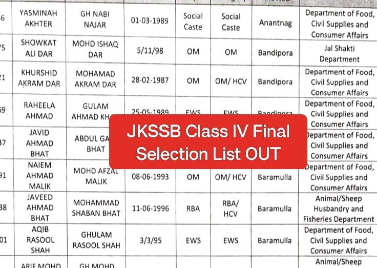 JKSSB Class IV Final Selection List OUT – Download PDF Here
