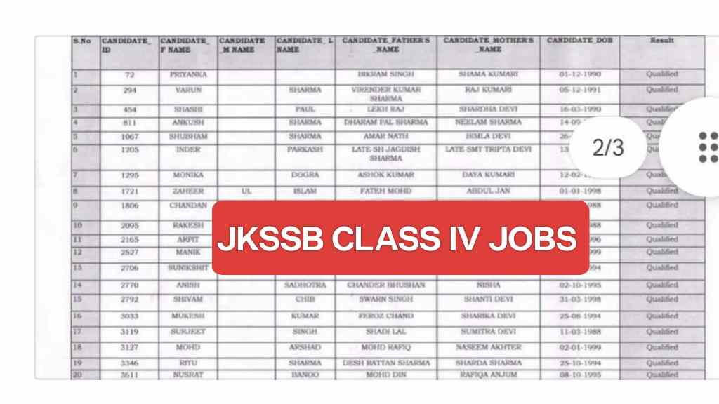 JKSSB Final Selection List and Allocation of Cadres & Departments for Remaining Class-IV Posts