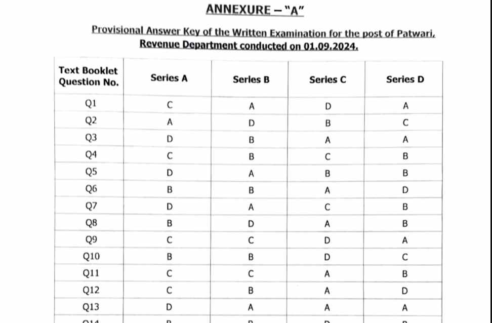 The Jammu and Kashmir Services Selection Board (JKSSB) has released the provisional answer key for the written examination conducted for the post of Patwari in the Revenue Department on September 1, 2024. This examination was advertised under Notification No. 02 of 2021.