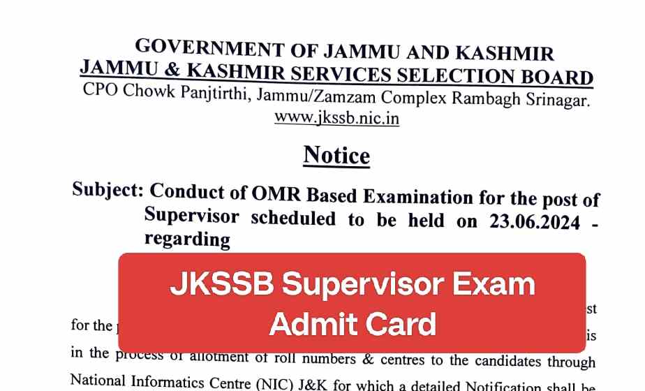 JKSSB Supervisor Exam Admit Card Announcement