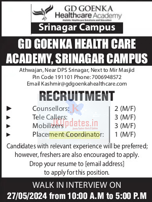 Job in GDGOENKA Healthcare Academy Srinagar
