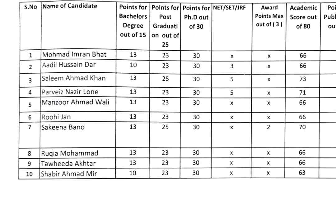 Kashmir University Interview , selection list of post of Contractual Assistant Professors in various programsDated: 16-2-25For Interview , selection list of post of Contractual Assistant Professors in various programs click link below: