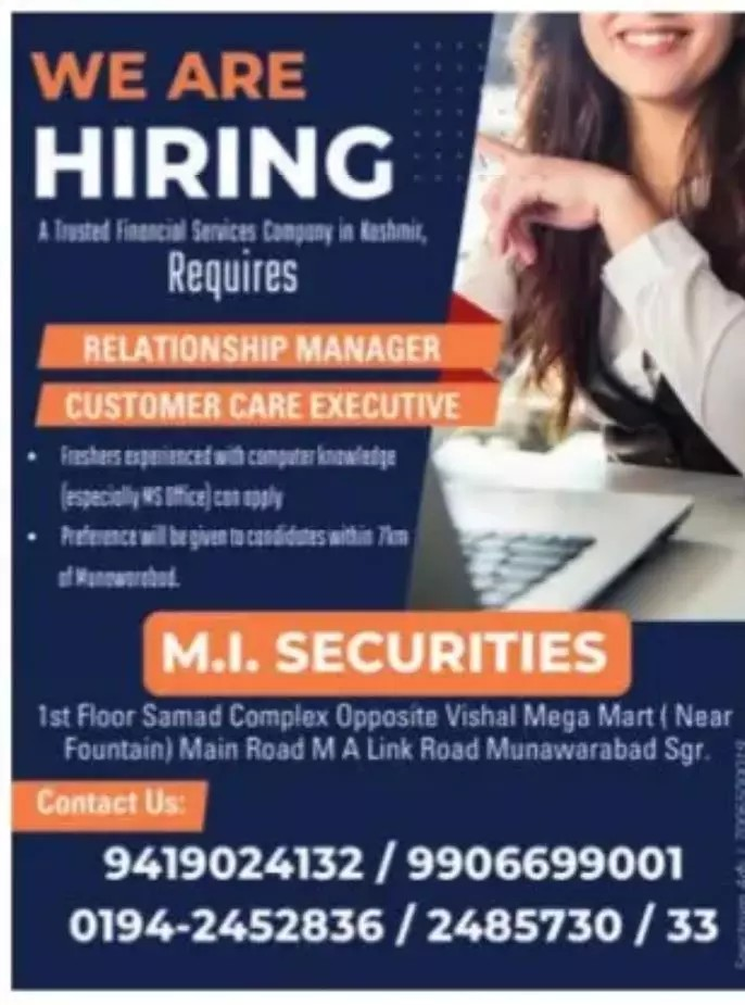 M.I. Securities requires candidates fulfilling eligibility for the following posts: