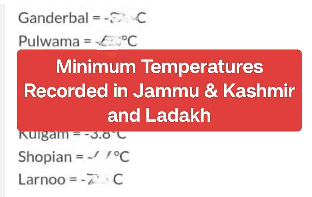 Minimum Temperatures Recorded in Jammu & Kashmir and Ladakh; Shopian Recorded Minus 7.8, Zojila Minus 23