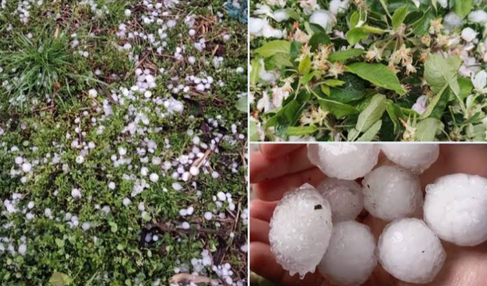 Areas including Keller, Sedow, and adjoining villages witnessed heavy hail, which severely impacted apple blossoms and standing crops. This is the second such hailstorm in the region within a short span.
