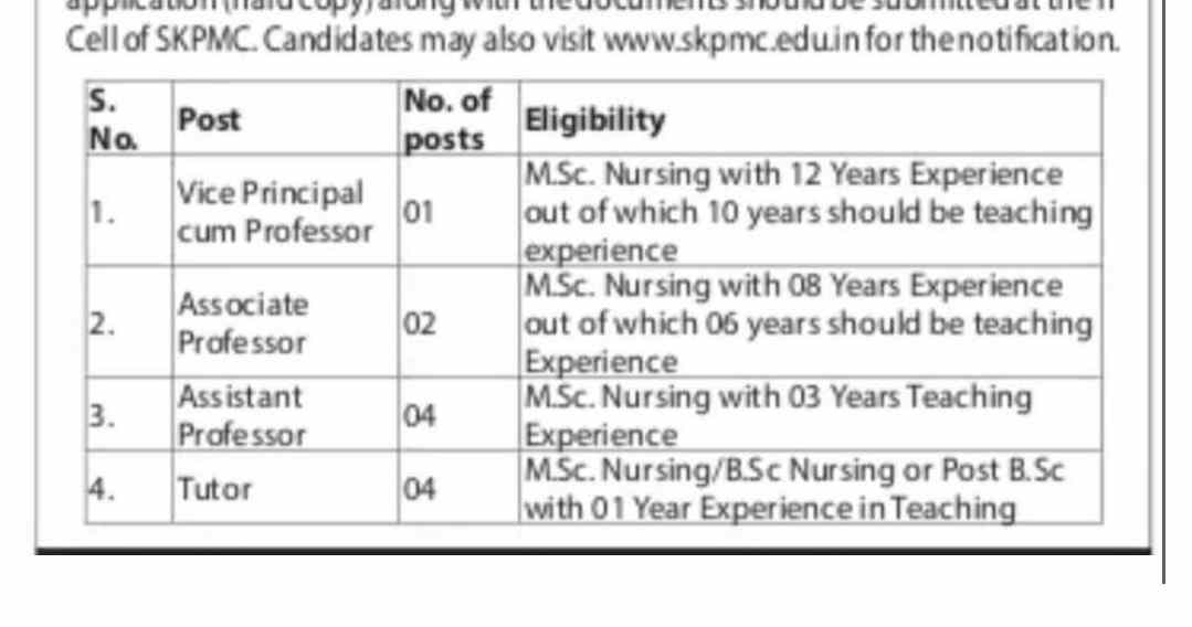 • Eligibility: M.Sc. Nursing with a minimum of 12 years of experience, including 10 years of teaching experience.