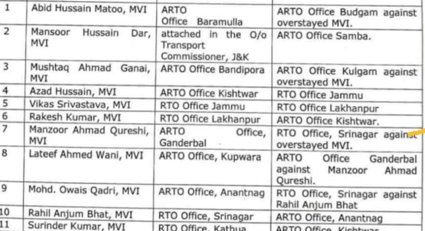 Transfers and Postings in Transport Department – J&K